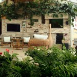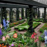Дорожка отделана плитками под мрамор; подвесные горшки – на кованных кронштейнах; канделябры из начищенной меди, драпировки с гобеленами и пр. Все это – беспорядочно и прихотливо! И никаких лютиков и васильков – розы и тюльпаны!