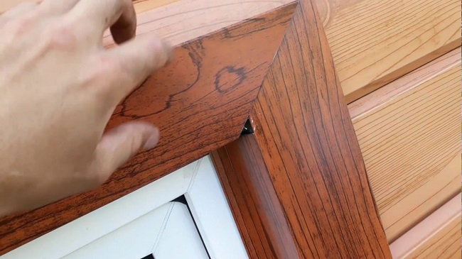Установка пластикового наличника выполняется либо монтажными компонентами (гвозди, саморезы, клей и т.п.), либо на защелки, предусмотренные конструкцией профиля. Также возможен монтаж на двусторонний скотч, но подобный вариант не отличается надежностью (сильный ветер может сорвать планки), поэтому применяется крайне редко, в основном как временное решение.