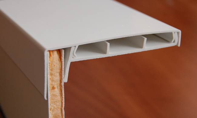 - Возможность скрытой прокладки коммуникаций. Некоторые модификации наличника состоят из нижнего профиля и лицевой крышки. Пустота между этими двумя деталями может использоваться для размещения проводки.